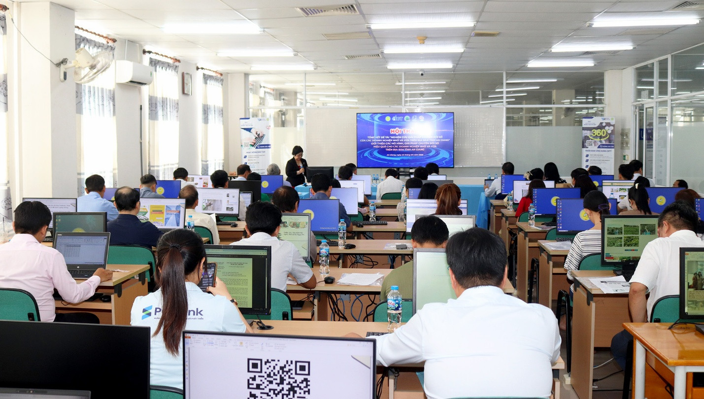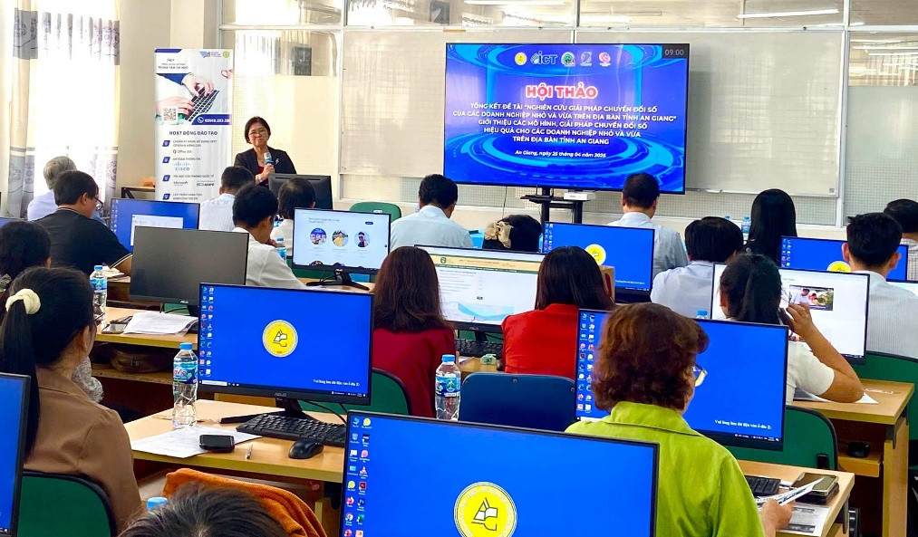 28/04/2025(Cổng TTĐT tỉnh AG)- Thực hiện đề tài “Nghiên cứu giải pháp chuyển đổi số của các doanh nghiệp nhỏ và vừa trên địa bàn tỉnh An Giang”. Ngày 25/4, Trường Đại học An Giang tổ chức Hội thảo tổng kết đề tài và giới thiệu các mô hình, giải pháp chuyển đổi số hiệu quả cho các doanh nghiệp nhỏ và vừa trên địa bàn tỉnh.