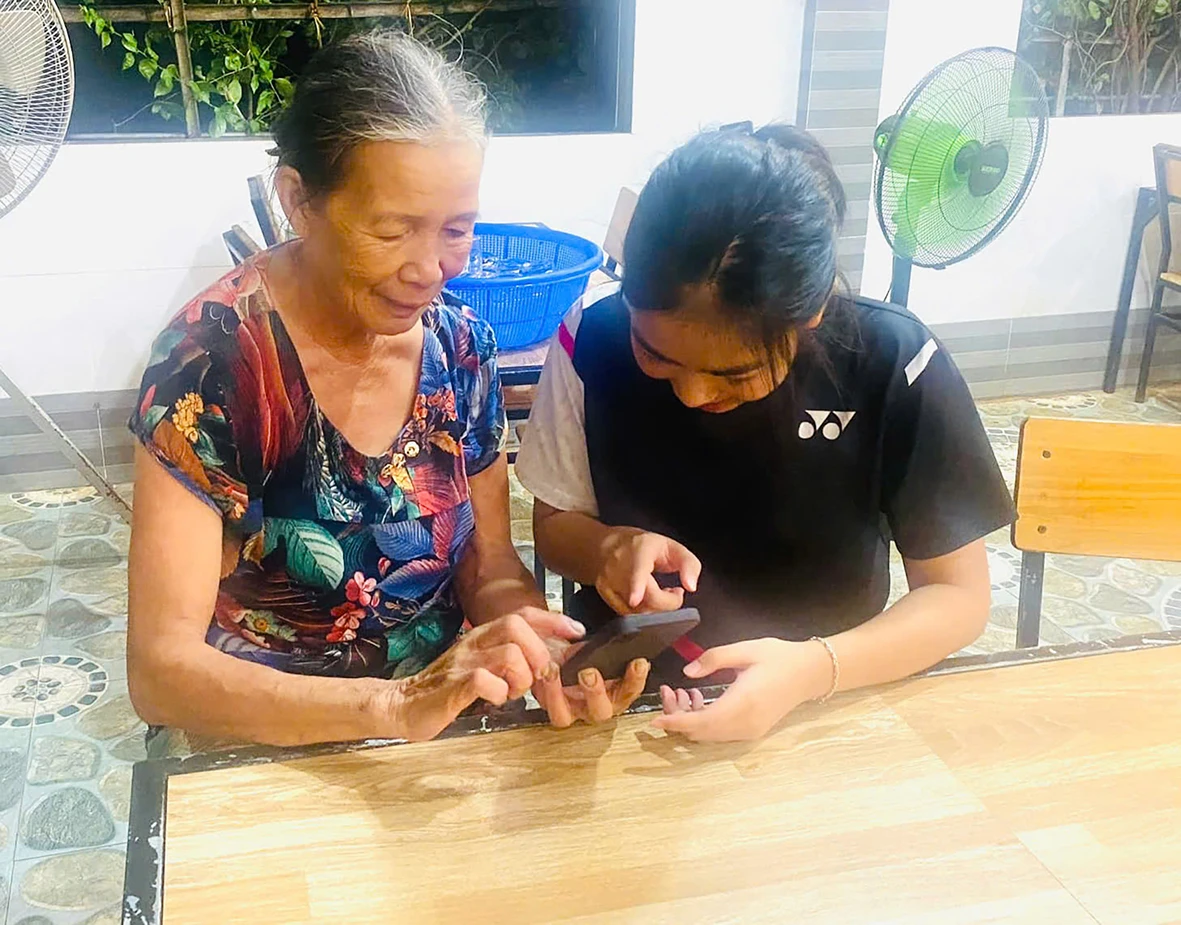 Cách đây vài ba năm, bà Nguyễn Thị Xuân (60 tuổi), trú tại thành phố Đông Hà, Quảng Trị còn chưa thạo sử dụng chiếc điện thoại cảm ứng đầu tiên vì có nhiều chức năng phức tạp. Song, với sự kiên trì và sự hỗ trợ từ con cháu, giờ đây bà không chỉ gọi video, sử dụng mạng xã hội, mà còn biết chuyển khoản ngân hàng, tra cứu thông tin thời sự, dự báo thời tiết và sử dụng các tiện ích trực tuyến như mua sắm qua mạng.