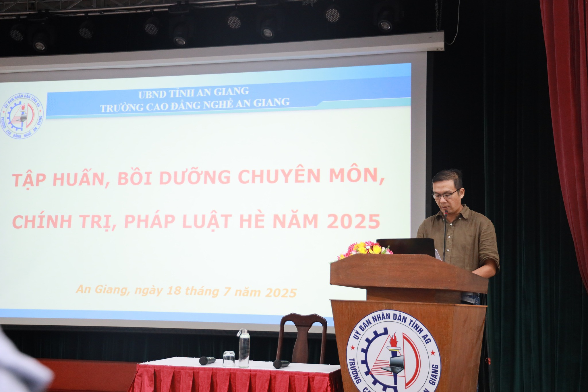 Ngày 18/07/2025, Trung tâm Tin học Trường Đại học An Giang phối hợp Trường Cao đẳng nghề An Giang tổ chức lớp tập huấn "Chuyển đổi số, Ứng dụng trí tuệ nhân tạo (AI) trong công việc, giảng dạy và nghiên cứu khoa học" với các chuyên đề: