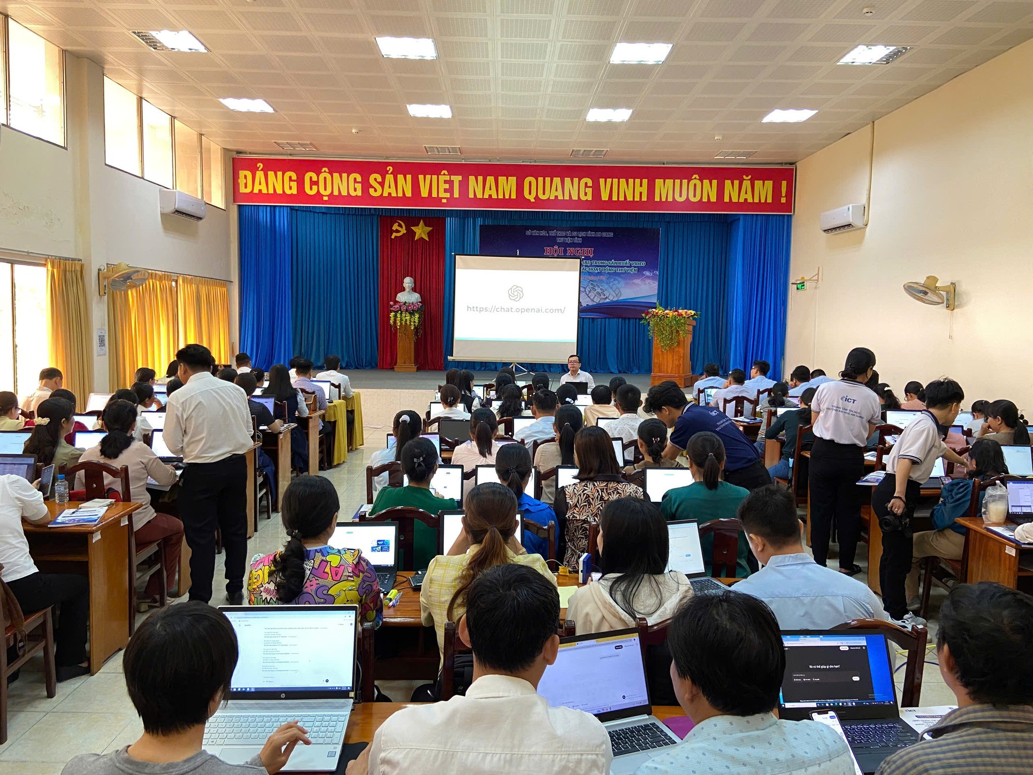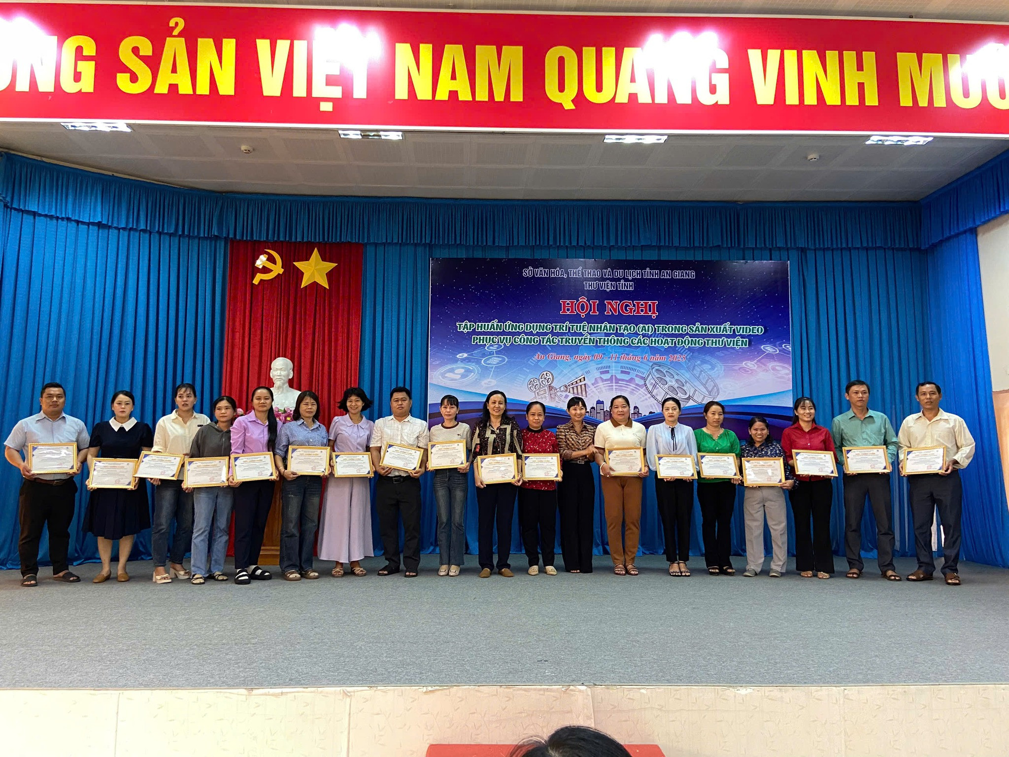 02/08/2025Từ ngày 09 đến ngày 11/06/2025, Trung tâm Tin học Trường Đại học An Giang phối hợp Thư viện tỉnh An Giang tổ chức lớp tập huấn “Ứng dụng trí tuệ nhân tạo (AI) trong sản xuất video phục vụ công tác truyền thông các hoạt động thư viện”